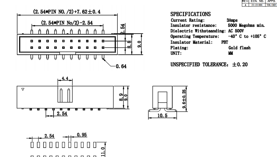簡牛 2*3p 貼片式 2.54mm數據手冊PDF下載