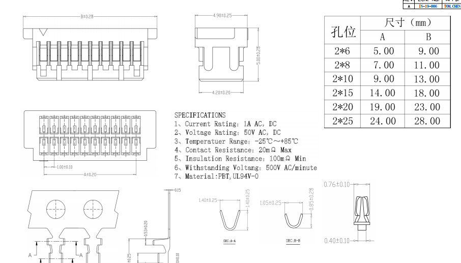 膠殼 2*20P 間距1.0mm 數(shù)據(jù)手冊(cè)PDF下載