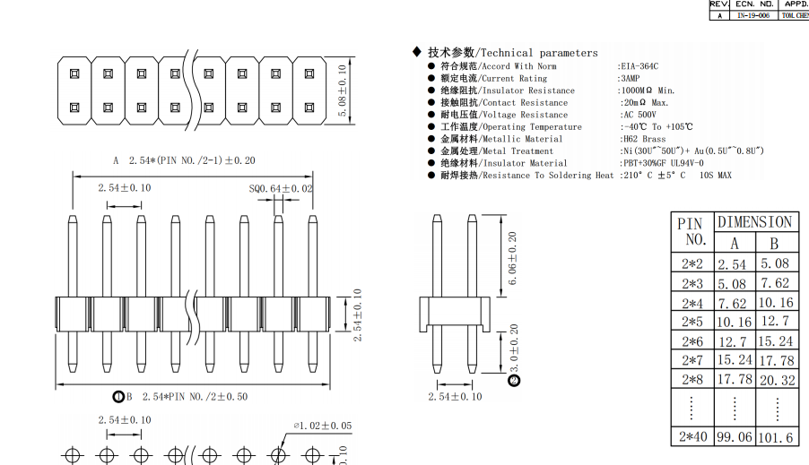 排針 單塑 2*7P 間距2.54mm 180度直針數(shù)據(jù)手冊PDF下載