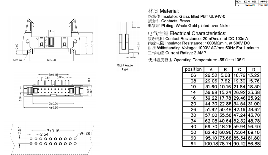 牛角 2x25P 彎針90度 2.54mm數(shù)據(jù)手冊(cè)PDF下載