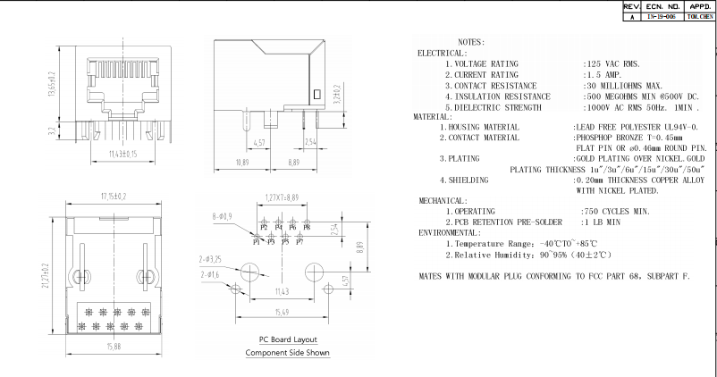 RJ45 Connector 1x1 Port 8P8CWithout LED Module Jack(無彈片)數(shù)據(jù)手冊PDF下載