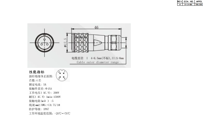 圓形連接器 4PIN 公插頭數(shù)據(jù)手冊(cè)PDF下載